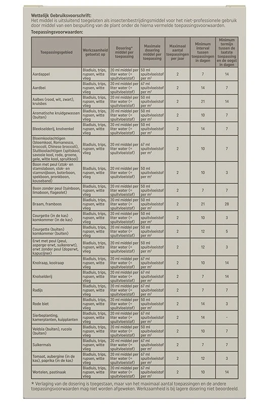 - Bestrijdt (buxus)rupsen, bladluizen, witte vliegen en tripsen
